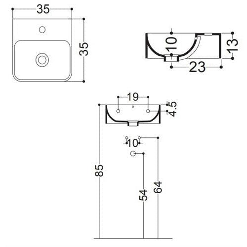 Lavabo Axa normal 1020 porcelænsvask - 35x35cm - hvid