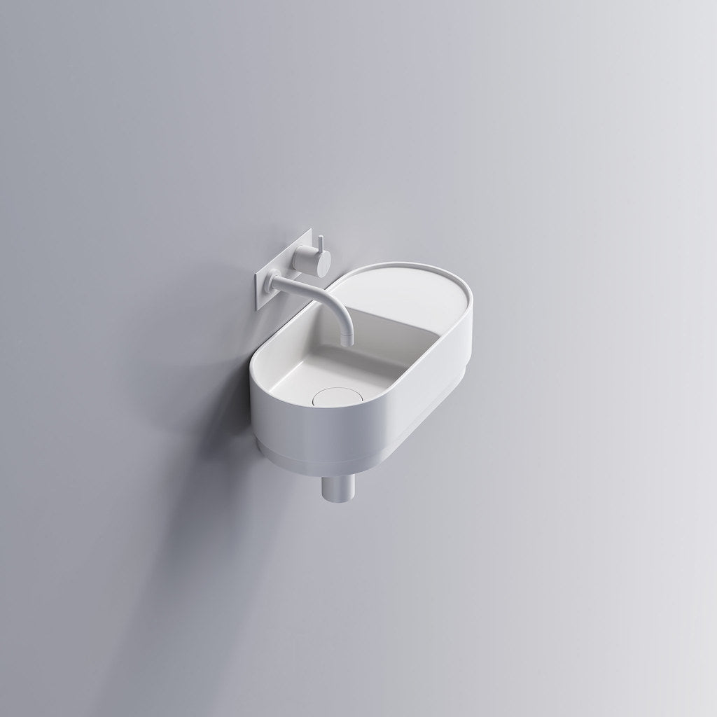 Tårn 44 håndvasken i mat hvid er inspireret af det ikoniske tårn på Knippelsbro og forener klassisk art deco med moderne minimalisme. Med sin kompakte 44 cm bredde passer den perfekt til små badeværelser. Fremstillet i premium Acovi® Solid Surface er den både holdbar, pletbestandig og nem at vedligeholde. De cirkulære bånd og farver inspireret af Københavns arkitektur giver designet et tidløst og eksklusivt udtryk.