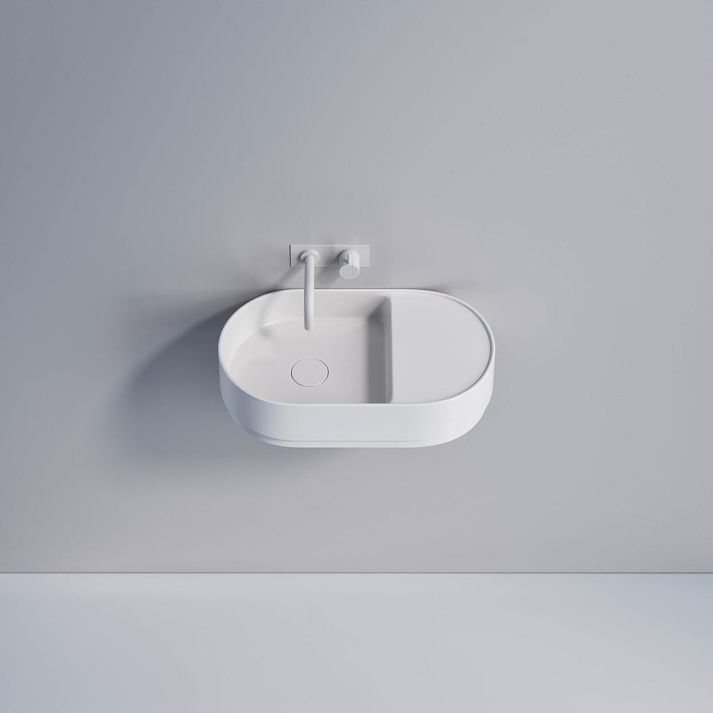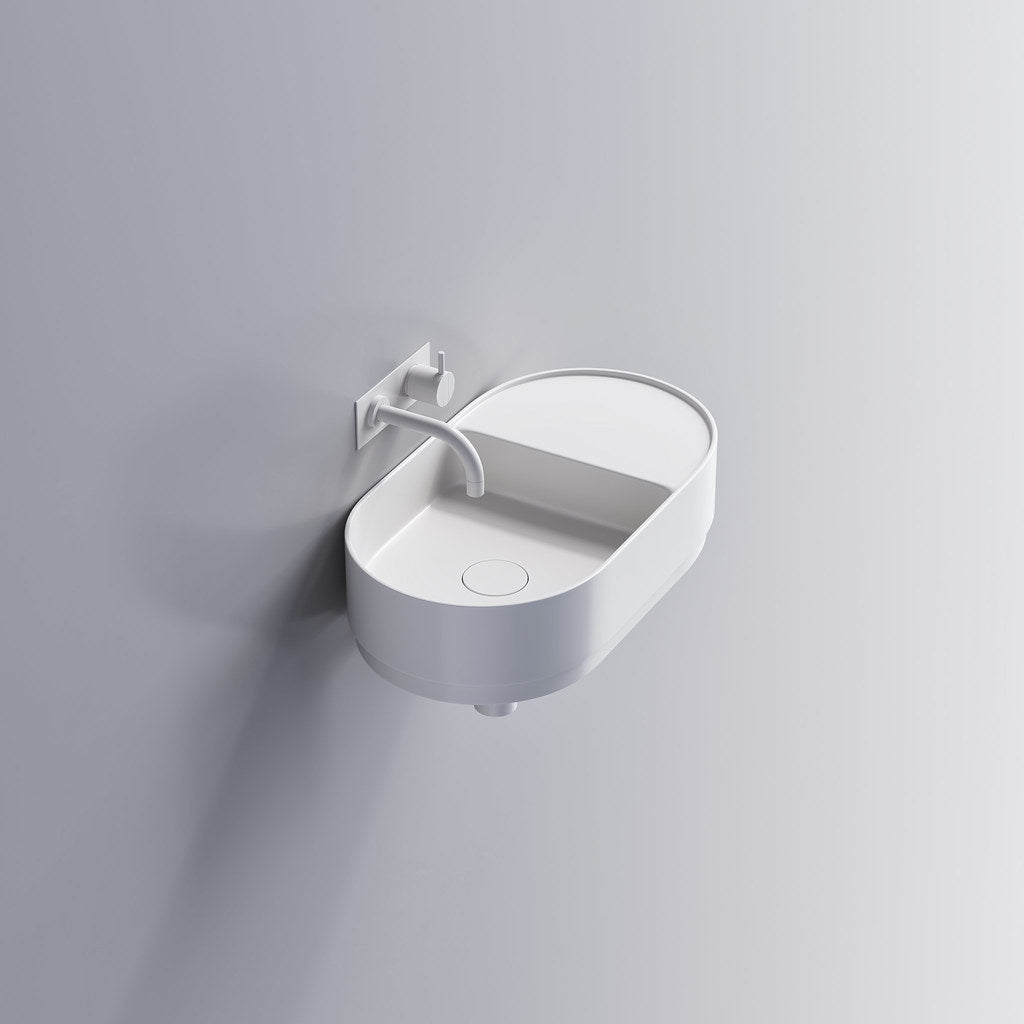 Tårn 54 håndvasken i mat hvid er inspireret af det ikoniske tårn på Knippelsbro og forener klassisk art deco med moderne minimalisme. Med sin kompakte 54 cm bredde passer den perfekt til små badeværelser. Fremstillet i premium Acovi® Solid Surface er den både holdbar, pletbestandig og nem at vedligeholde. De cirkulære bånd og farver inspireret af Københavns arkitektur giver designet et tidløst og eksklusivt udtryk.