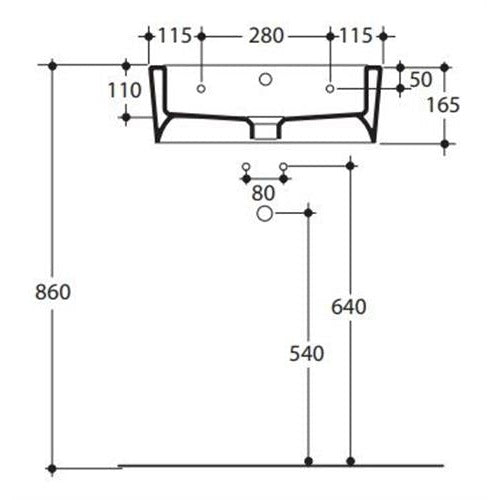 Vasken har hanehul og overløb, leveres uden bundventil og har ikke glaseret bagside.