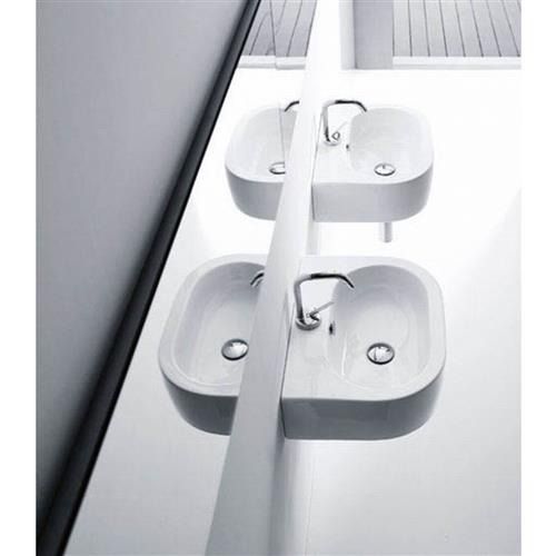 Elegant porcelænsvask til placering på bordplade eller vægophæng i enkelt og stilrent design. Designet af Simone Anzellini.
