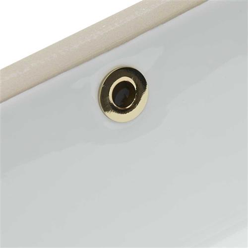Elegant skjuler til overløbshullet på håndvaske, fremstillet i rustfrit stål med poleret messingfinish.